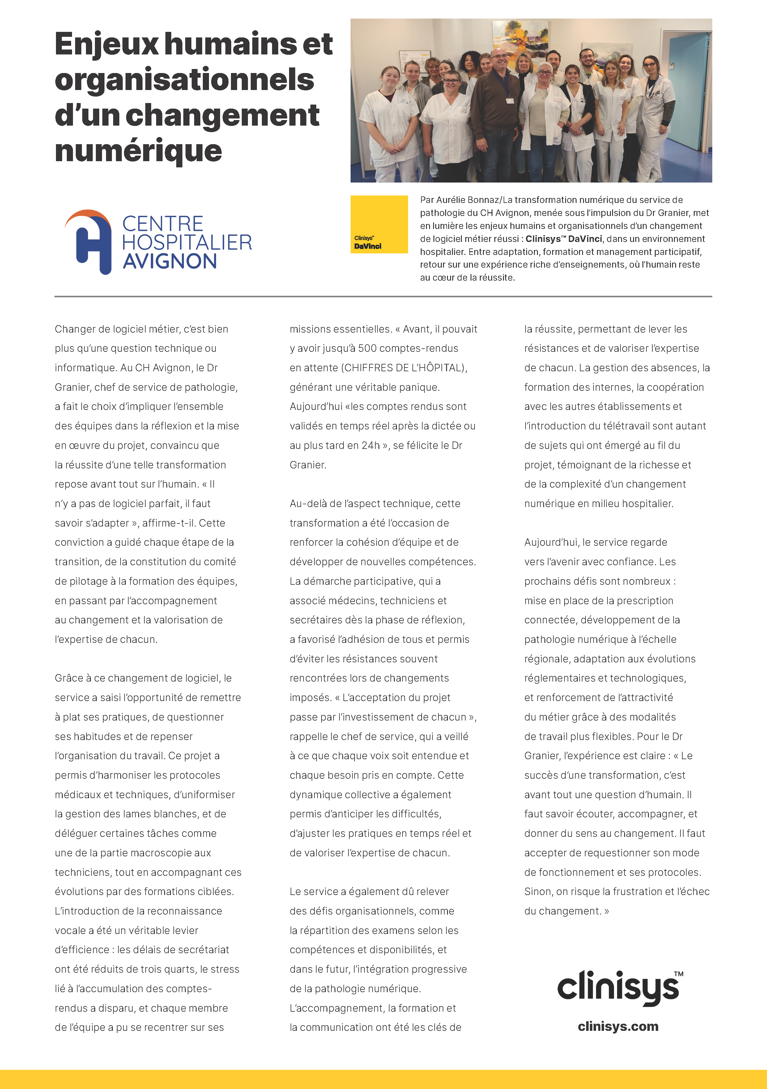 Clinisys™ DaVinci : un choix stratégique pour le CH Avignon