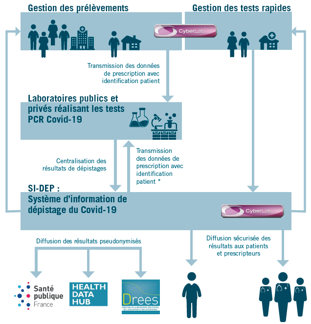 Mettre en œuvre un dépistage virologique de grande ampleur au niveau national, afin de contrôler et limiter une reprise de l’épidémie et piloter finement la dynamique de contamination sur le territoire, dépend de la capacité à repérer, tester et isoler les malades et les cas contacts. Cette mission d’intérêt public et prioritaire est assurée par le projet SI-DEP, qui repose sur un partenariat entre le ministère français des solidarités et de la santé, l’assistance publique – hôpitaux de Paris (AP-HP), Santé publique France, ainsi que les laboratoires de biologie médicale et les éditeurs de système d’information de laboratoire.