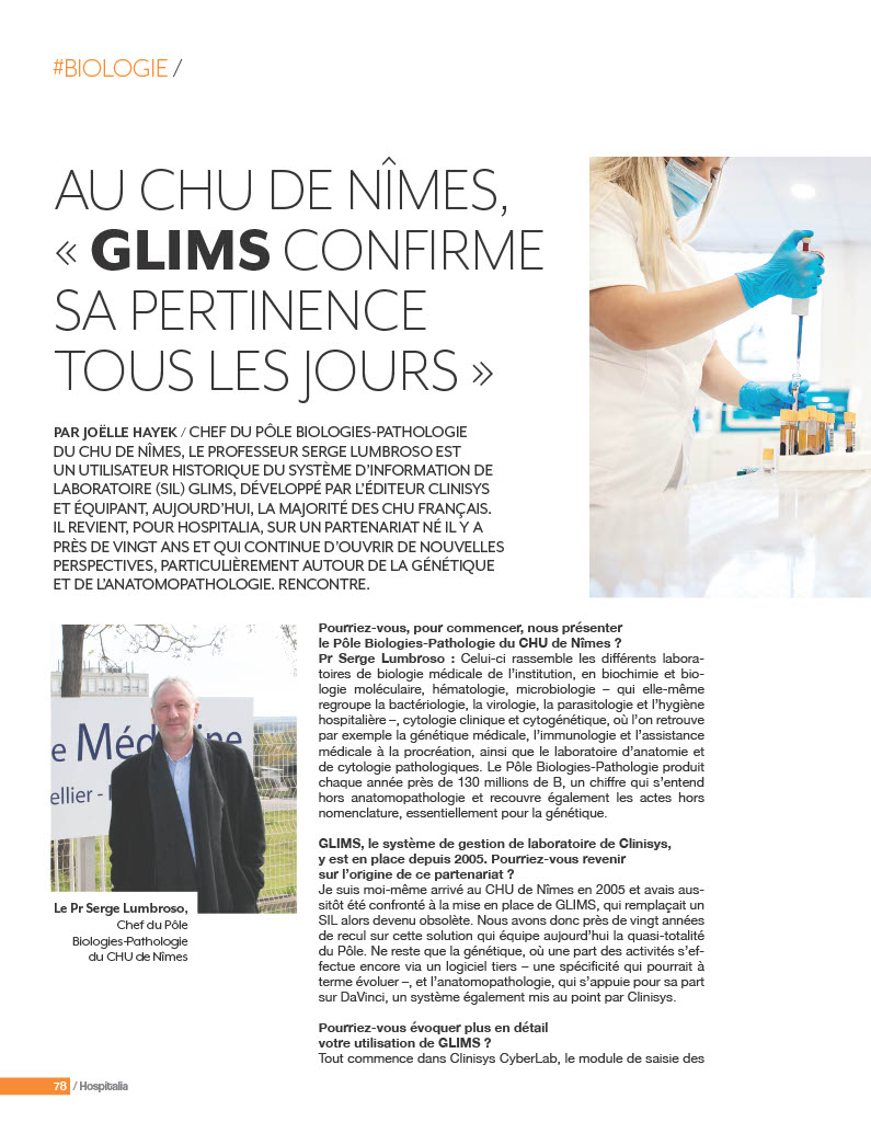 Découvrez le témoignage de Serge Lumbroso, chef de pôle biologie-pathologie au CHU de Nîmes et qui utilise notre SIL GLIMS depuis plus de 20 ans.