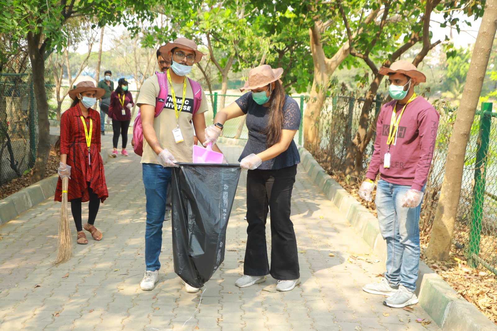 Employees volunteer to clean lake in the community to spread awareness about environment protection.