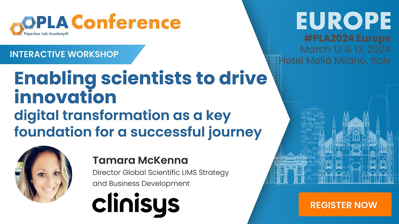Make sure to mark your calendar and attend Clinisys’ workshop, “Enabling scientists to drive innovation: digital transformation as a key foundation for a successful journey”. During this presentation, we will explore how laboratory digital transformation can help scientists overcome the challenges and barriers that hinder their innovation and growth potential. We will also provide examples and share best practices of how digital transformation – and the implementation of a LIMS – can enable organizations not only to achieve greater efficiency and productivity but make an impact in their fields.