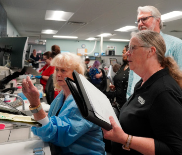 P&C Labs Chief Operating Officer Steve Olsen and lab technician Marilyn Harp work with Clinisys™ Orchard Enterprise Pathology® Field Implementation Analyst Tammy Barnhart during system implementation to solidify workflow configurations.